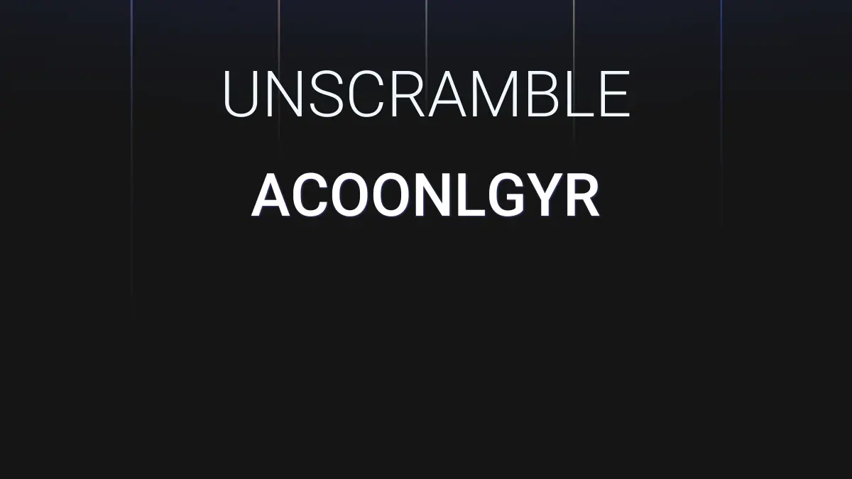 We unscrambled the letters ACOONLGYR. From these 9 letters we were able to produce 526 words total which are displayed in groups below, the longest words are shown first.