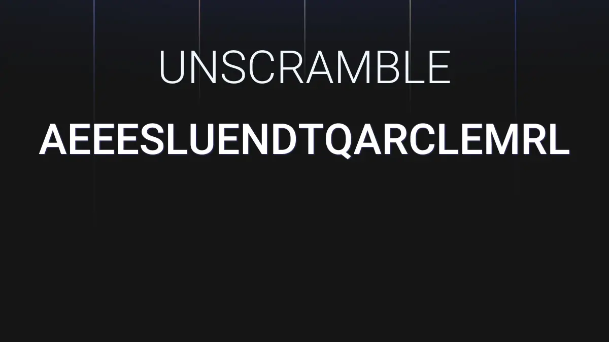 We unscrambled the letters AEEESLUENDTQARCLEMRL. From these 20 letters we were able to produce 10110 words total which are displayed in groups below, the longest words are shown first.