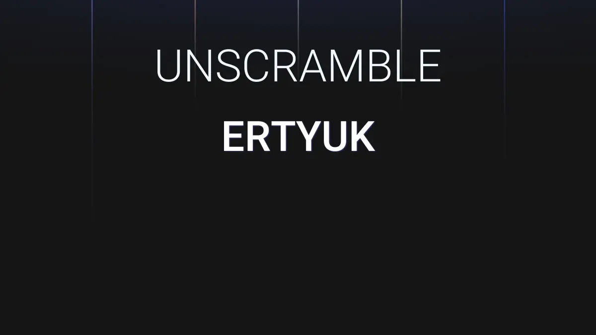 We unscrambled the letters ERTYUK. From these 6 letters we were able to produce 110 words total which are displayed in groups below, the longest words are shown first.
