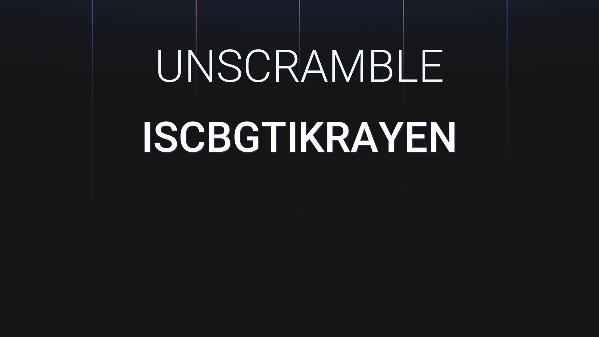 We unscrambled the letters ISCBGTIKRAYEN. From these 13 letters we were able to produce 10706 words total which are displayed in groups below, the longest words are shown first.