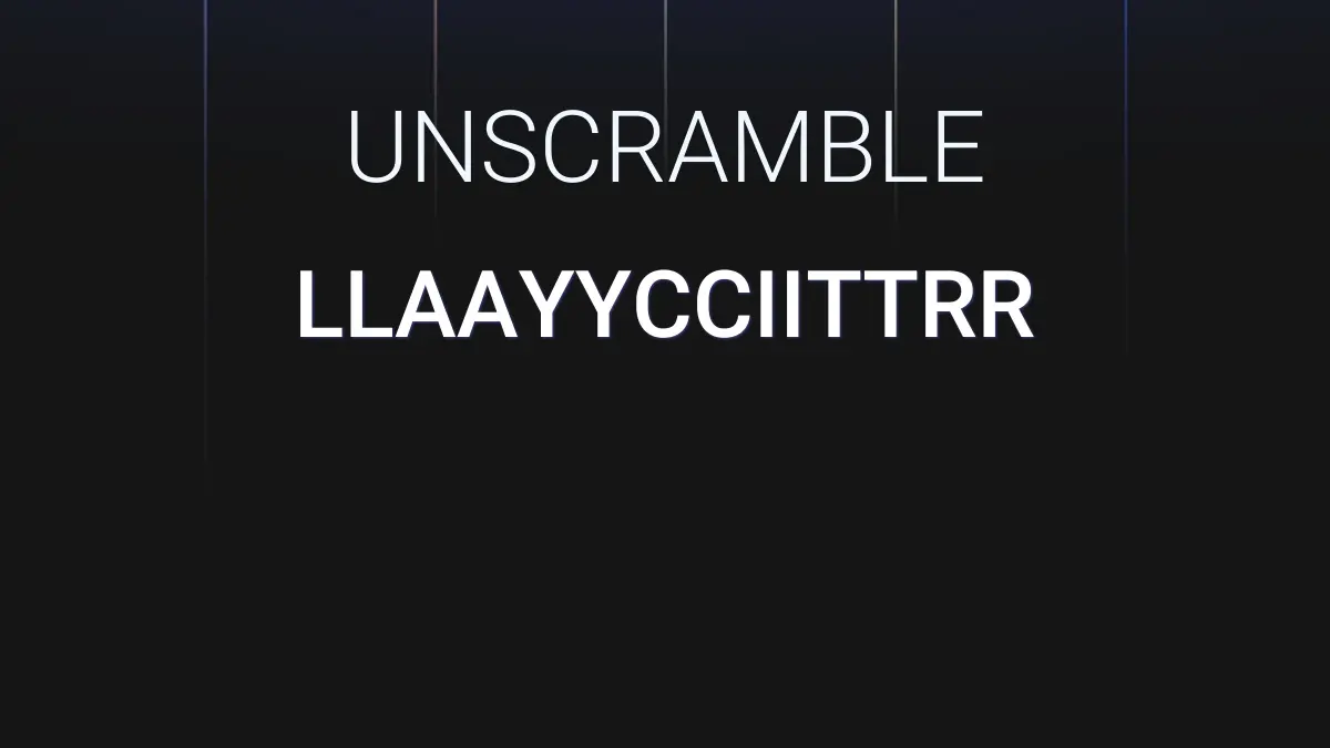 We unscrambled the letters LLAAYYCCIITTRR. From these 14 letters we were able to produce 343 words total which are displayed in groups below, the longest words are shown first.