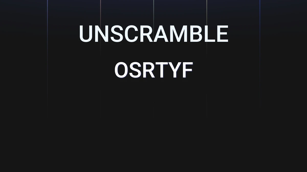 We unscrambled the letters OSRTYF. From these 6 letters we were able to produce 146 words total which are displayed in groups below, the longest words are shown first.
