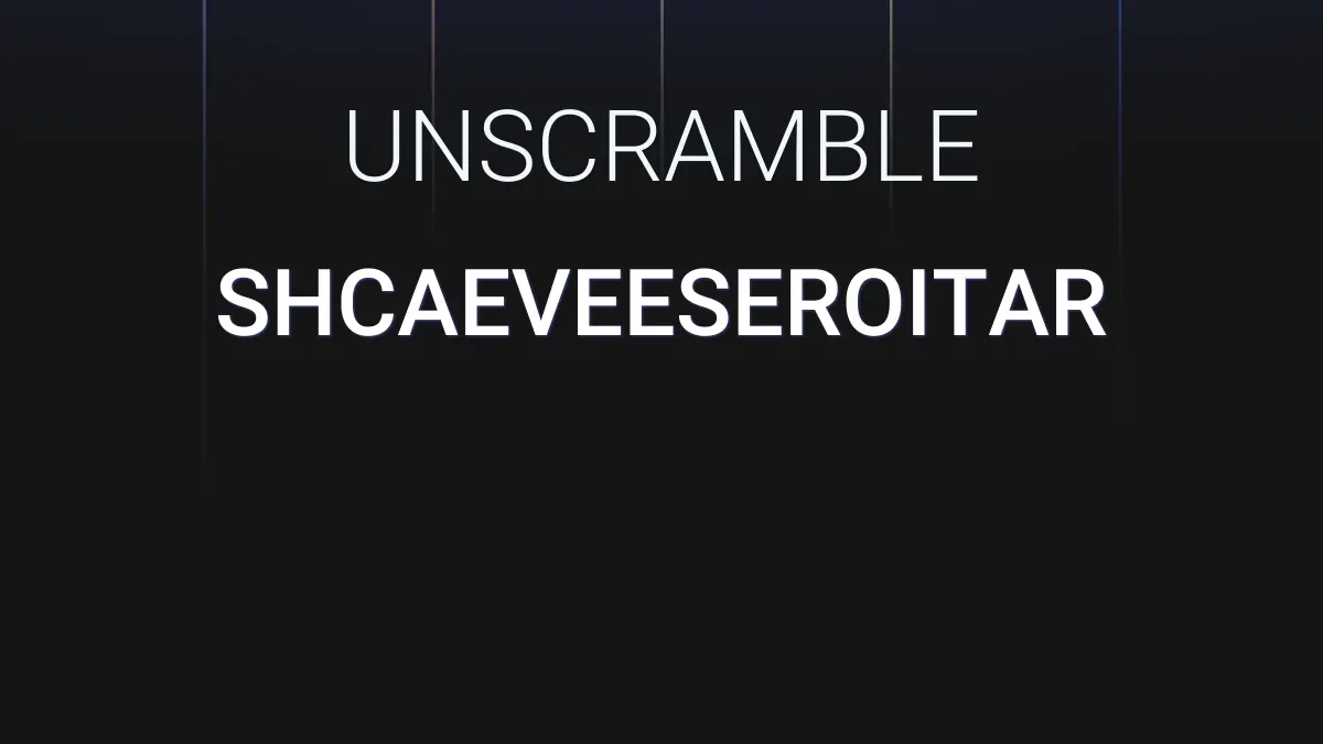 We unscrambled the letters SHCAEVEESEROITAR. From these 16 letters we were able to produce 5879 words total which are displayed in groups below, the longest words are shown first.