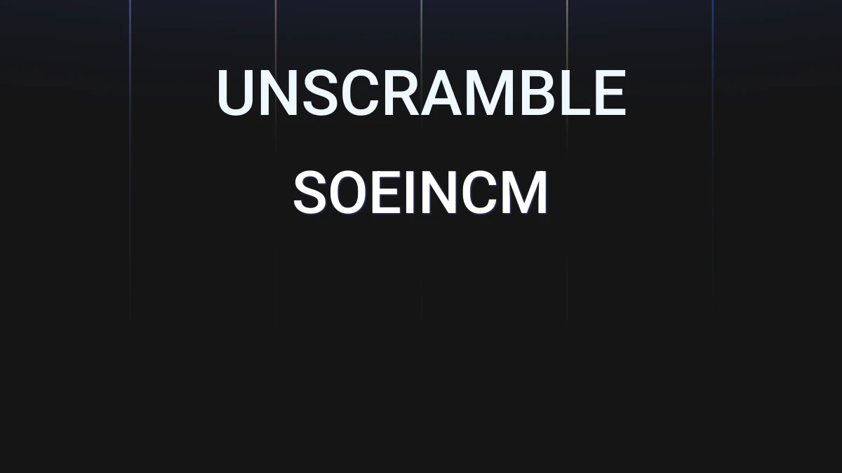 We unscrambled the letters SOEINCM. From these 7 letters we were able to produce 577 words total which are displayed in groups below, the longest words are shown first.