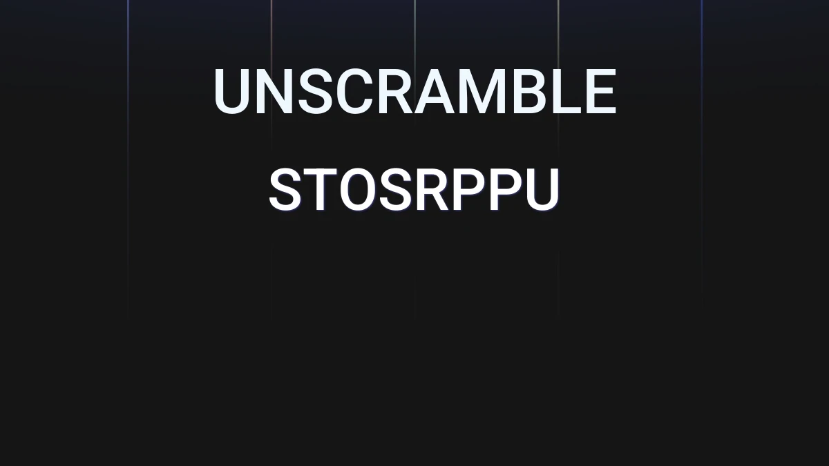 The letters stosrppu revealed 18 anagrams and the other words varied from 2 to 8 letters in length. The words are sorted by their length in a descending order. Within each group of words they are also sorted alphabetically so you can narrow down the results quicker.