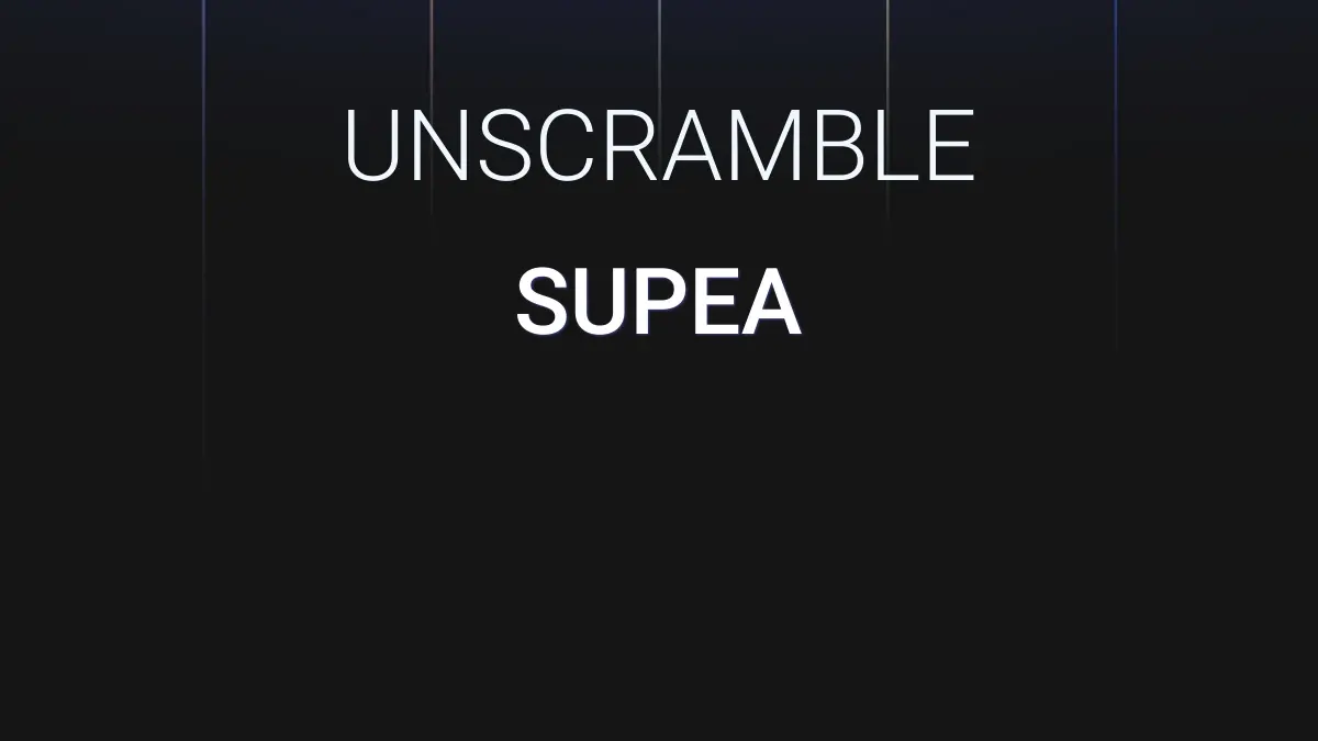 We unscrambled the letters SUPEA. From these 5 letters we were able to produce 109 words total which are displayed in groups below, the longest words are shown first.
