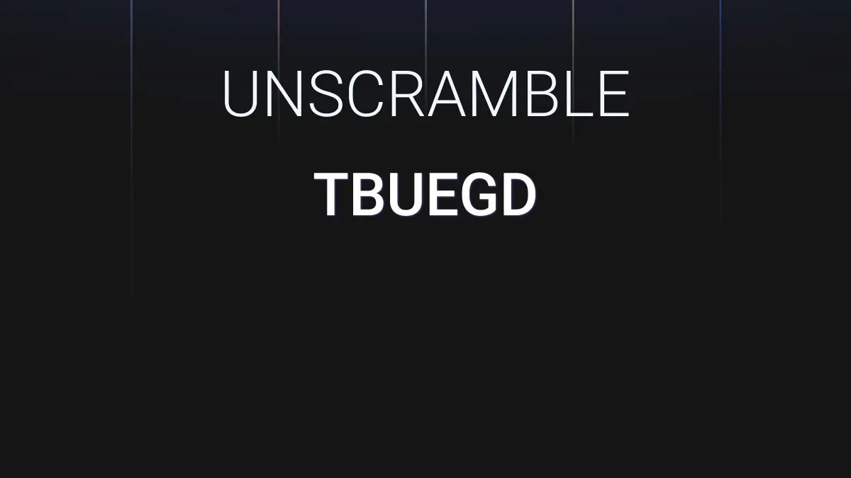 We unscrambled the letters TBUEGD. From these 6 letters we were able to produce 106 words total which are displayed in groups below, the longest words are shown first.