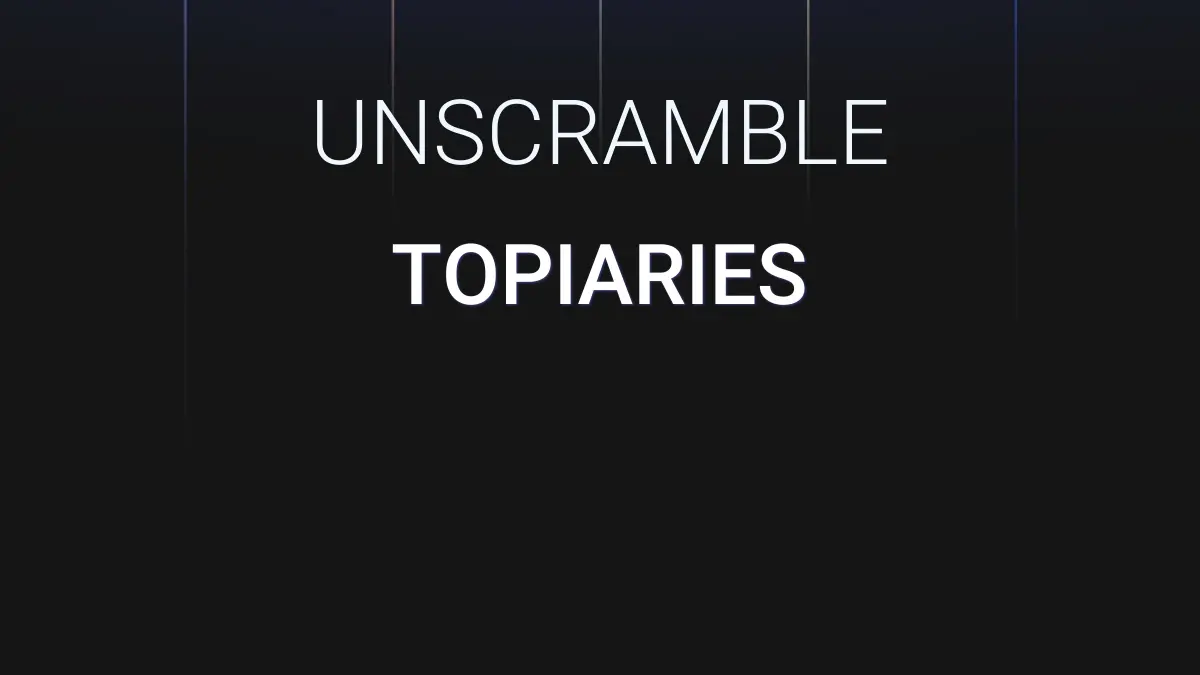 The letters topiaries revealed 280 anagrams and the other words varied from 2 to 9 letters in length. The words are sorted by their length in a descending order. Within each group of words they are also sorted alphabetically so you can narrow down the results quicker.