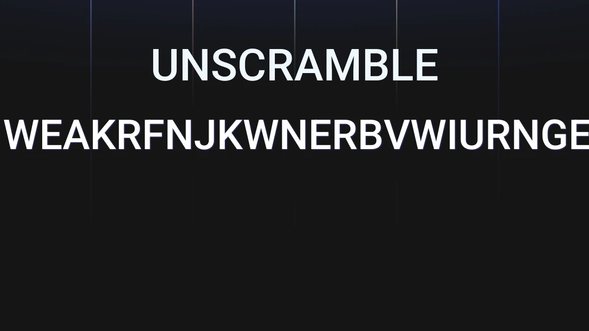 We unscrambled the letters WEAKRFNJKWNERBVWIURNGEJRNJTGNW. From these 30 letters we were able to produce 4920 words total which are displayed in groups below, the longest words are shown first.